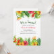 Lush tropical foliage and colorful flowers create the borders of this tropical invitation. Perfect for all Hawaiian-theme and summer celebrations. (<a href='http://www.freepik.com/free-vector/exotic-floral-background_874892.htm'>Designed by Freepik</a> ). <br/><br/>The card is easy to customize with your wording, font, font color and choice of six paper types.<br/><br/>Not exactly what you're looking for? All our products can be custom designed to meet your needs at no extra charge.<br/><br/>Simply contact us at askcottonlamb@gmail.com<br/><br/>Coordinating products available: