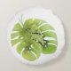 Tropical exotic green monstera leaves watercolor e round pillow