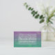 Trendy and modern business card design featuring Monstera leaves with purple to green horizontal gradient overlay and transparent rectangle in the center with your text written in a fully customizable modern calligraphy script.