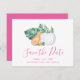 Announce your girl baby shower with my tropical save the date invitations featuring the words Save Our Date in a trendy script typography style that evokes the look of hand lettering. This simple card features a replica of my original watercolor red fox with monstera leaves and white pumpkin with your names, shower date and location. Cards reverse to complimentary solid pink color. Perfect for September, October and November tropical themed girl baby showers. To see more ideas and thanksgiving baby announcements by Victoria Grigaliunas visit www.zazzle.com/dotellabelle.