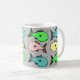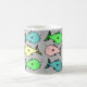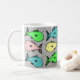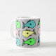 Colourful illustration of fish decorate this coffee mug. A gift idea for anyone who keeps tropical fish maybe. Tropical fish design. An attractive designed mug decorated with a pattern of colourful fish. Gift idea for a tropical fish owner. Grey background.