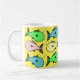 Tropical fish design. An attractive designed mug decorated with a pattern of colourful fish. Gift idea for a tropical fish owner. Yellow background.
