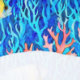 Pretty round beach towels with a pattern of tropical colorful fish and bright blue water and coral.
