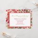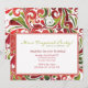 A colorful invitation with tropical green and red swirls and abstract flowers. The center has a white frame for your personalization.