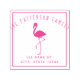 A self inking address stamp featuring an illustration of a flamingo silhouette.