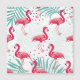 Colorful flamingo and leafs dance in rhythm. Summer's tropical embrace.