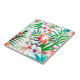 A tropical theme artwork of a pink flamingo and green tropical jungle plants with hibiscus flowers and palms against a neutral white background. A fun and colourful art piece.