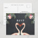 A floral and flamingo design rsvp postcard with chalkboard effect background. Use this co-ordinating RSVP card to encourage your guests to reply promptly! Edit the available text fields to suit your requirements. Front and back can be edited. Other items and stationery in this collection, such as favor stickers and, invitations.. Perfect for beach/summer/tropical parties, weddings and showers/events.