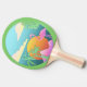 The art on this ping pong paddle features a colorful tropical scene with flamingos, palm trees, and a beautiful island backdrop. The design is not only visually stunning but also adds a fun and playful touch to any game of ping pong.