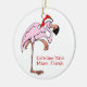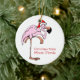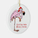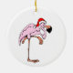 Cute round ornament with cartoon artwork of a pink flamingo, with a Santa Hat on. Text reads, Christmas 2010, Miami, Florida and is totally customizable to read what ever you want. Fun keepsake ornament and makes a nice gift too.