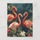 "Escape to a tropical paradise with our Vintage Flamingo Jungle Postcard. This enchanting piece captures the essence of vibrant wilderness, featuring three majestic flamingos against a lush and colorful jungle backdrop. The vintage aesthetic adds a timeless allure, inviting you to dream of exotic landscapes and the serenity of nature. Whether you send it as a postcard or frame it as a miniature masterpiece, this card brings a touch of retro elegance to your wanderlust-filled collection."