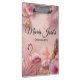 This versatile clipboard is perfect for the Quinceañera herself to keep track of assignments, checklists, or party details, or it can serve as a unique prop for a guest book signing station. Easily personalize it with 'Sofia's Sweet 15' for a memorable touch, or 'Isabella's Big Day Notes'. You could also include her full name, or a fun phrase such as 'Flamingle & Organize'. It's a practical, durable, and beautifully themed gift that will add a pop of paradise to any task!"