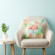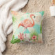 Tropical Flamingo Watercolor & Geometric Pattern Throw Pillow