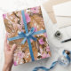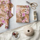 Tropical pink flowers, tan and brown plant leaves are featured on these wrapping paper sheets, fun for any occasions.