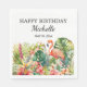 Tropical Floral Flamingo Happy Birthday Name Napkins