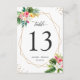 Tropical Floral Gold Geometric Wedding Table Number Card.