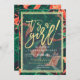 Tropical Floral Gold Frame Hawaiian Baby Shower Invitation