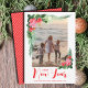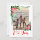 Happy New Year watercolor leaves and tropical Hawaiian flowers accent your favorite photo with your names and greeting in chic lettering.