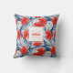 Super cute double-sided outdoor pillow featuring a red, white, blue floral tropical botanical pattern accented with your monogrammed initial and name. Perfect for a porch, patio, pool area, beach house or garden shed.