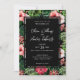 Tropical Floral Hibiscus Wedding Black Invitation