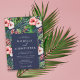 Tropical Floral Hibiscus Wedding Modern Navy Blue Invitation
