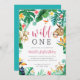 Tropical Floral Jungle Animals First Birthday Invitation