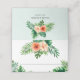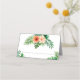 Beautiful wedding place card design featuring watercolor flowers and foliage on a white background in the front and mint green background at the back.