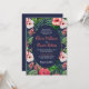 Tropical Floral Navy with Pink Hibiscus Wedding Invitation