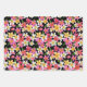 Tropical plumeria flowers in pink, yellow and white on a black background are featured on these wrapping paper sheets, fun for any occasions.