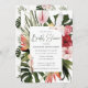 Plain white envelopes are included with paper invitations and will come to fit the invitation size you select. If you don’t need the envelopes, you may choose to not receive them by selecting the dropdown below "Envelopes" and choosing "None." If you’d like to have a design on your envelopes, you can browse all of these available envelopes to find the design that complements your Tropical Floral Palm Bridal Shower Invitation.