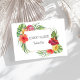 Bring a vibrant touch of paradise to your wedding reception with this tropical floral wedding table number card. Featuring lush hibiscus flowers, palm leaves, and exotic tropical blooms, this customizable table number design is perfect for destination weddings, beach celebrations, or tropical-themed events. Personalize with your guest's name and table number to create a warm and inviting atmosphere. This stunning card effortlessly complements outdoor weddings, island getaways, or beachside receptions, ensuring your guests find their seats in style.
