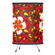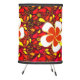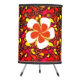 This lamp displays 3 large white red yellow and orange flowers in a diagonal line. Behind them is a vivid tropical color background. Matching products can be found in the Living Room Decor collection.