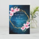 Tropical florals pink dark blue geometric wedding invitation