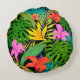 Tropical flower and palm leaf Hawaiian colorful Round Pillow