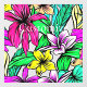 A colorful blend of various tropical or jungle flowers to customize, personalize by changing to your name