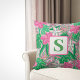 Tropical Flower Monogram Pink White Green Preppy Throw Pillow