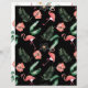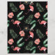 Colorful paper has great versatility with one side black background and one side white. Both incorporate lots of tropical island elements including pink flamingo birds, tropical palm leaves and flowers.