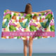 Tropical Flowers and Leaves Pink Flamingo Custom Beach Towel
