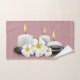 Tropical Flowers & Candles Bath Black Towels Decor. Get the washcloth, hand towel, bath towel or the whole set. Relaxing spa towels theme that you can customize the color to suit your bathroom or spa decor.