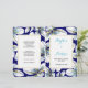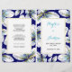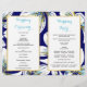 Tropical blossoms folded wedding program. This floral modern design features lovely white flowers with gold foil leaf and aqua details on navy blue. It is perfect for a summer wedding. Fold it down the center to take a bi-fold wedding program. Choose only the value paper type.
