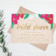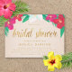 Beautiful pink, red and white tropical flowers pair with gold text in these tropical floral bridal shower invitations.