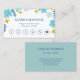 Floral loyalty punch card for a massage therapist. A loyalty card with tropical flowers in blue and yellow against a white background. Add our business name.