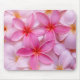 Mouse pad shown with a photo print of beautiful tropical plumeria flowers.