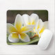 Mouse pad shown with a photo print of beautiful tropical plumeria flowers.