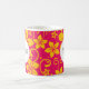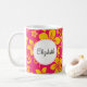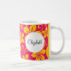 An assortment of tropical flowers in bright yellow overlays hot pink to make this mug the perfect way to start your day. The customized name or message stands out in a white circle. Available in alternate colors with matching products.