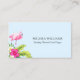 Tropical Flowers & Pink Flamingo On Blue Business Card