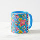 Tropical Flowers w FlipFlops Pink Monogram on Blue Mug