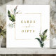 This wedding cards & gifts sign features watercolor green tropical foliage, palm tree leaves, banana leaves with a gold rectangle frame. It's perfect for a beach, summer or destination wedding. Background color can be changed. >>> Check out the entire collection <<< https://www.zazzle.com/collections/tropical_foliage_gold_collection-119316977990783186