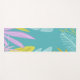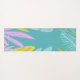 Dark turquoise background with tropical foliage in light turquoise, yellow and pink with custom elegant font monogram