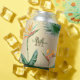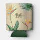 Tropical Foliage Palm Floral Monogram Script Gold Can Cooler